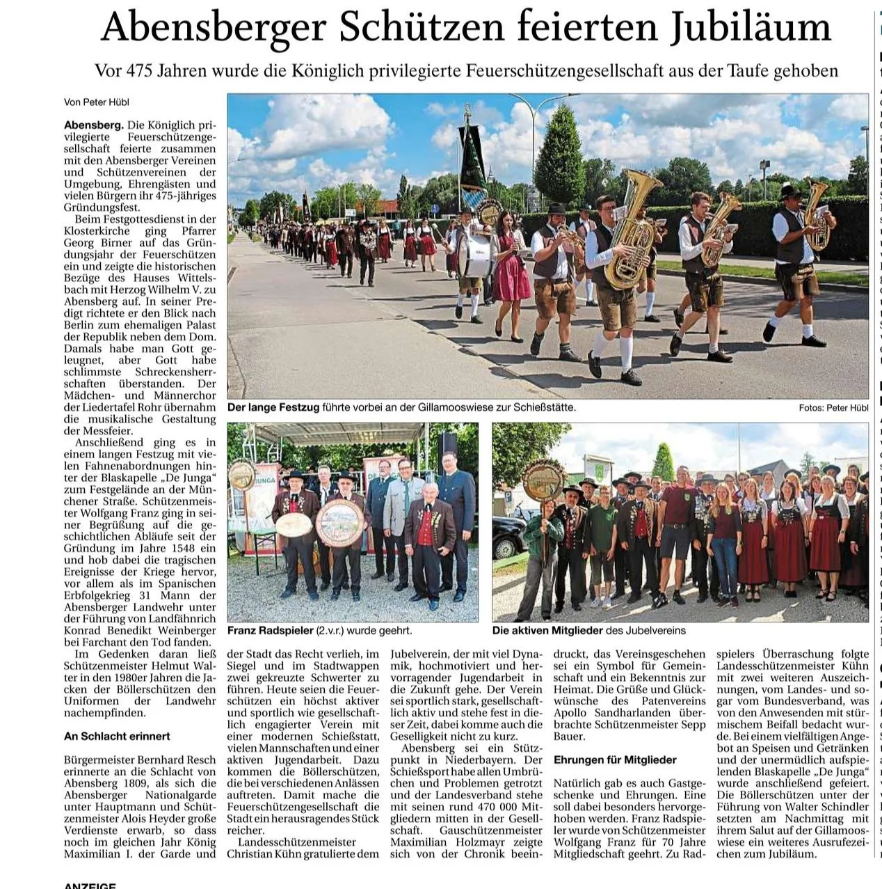 Sei dies bei Veranstaltungen der Böllergruppe oder bei der Beteiligung an wichtigen Festen unserer Stadt Abensberg, an Jubiläen benachbarter Vereine oder an kirchlichen Festtagen. Vor allem beim traditionellen Gillamoosauszug und beim Bürgerfest engagieren sich die Feuerschützen mit zahlreichen Teilnehmern und Aktionen. Sportliche Wettkämpfe sowie gesellige Veranstaltungen sind meist generationenübergreifende Ereignisse, die das integrative Selbstverständnis unserer Gesellschaft prägen.